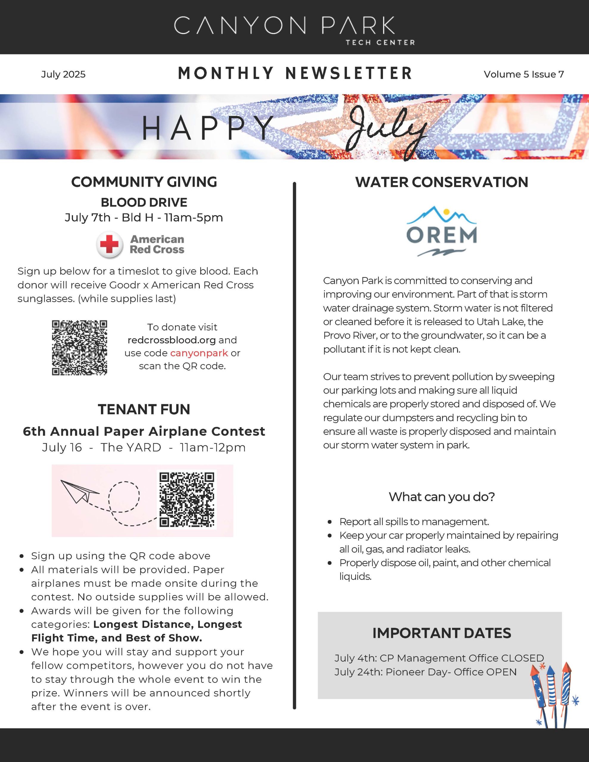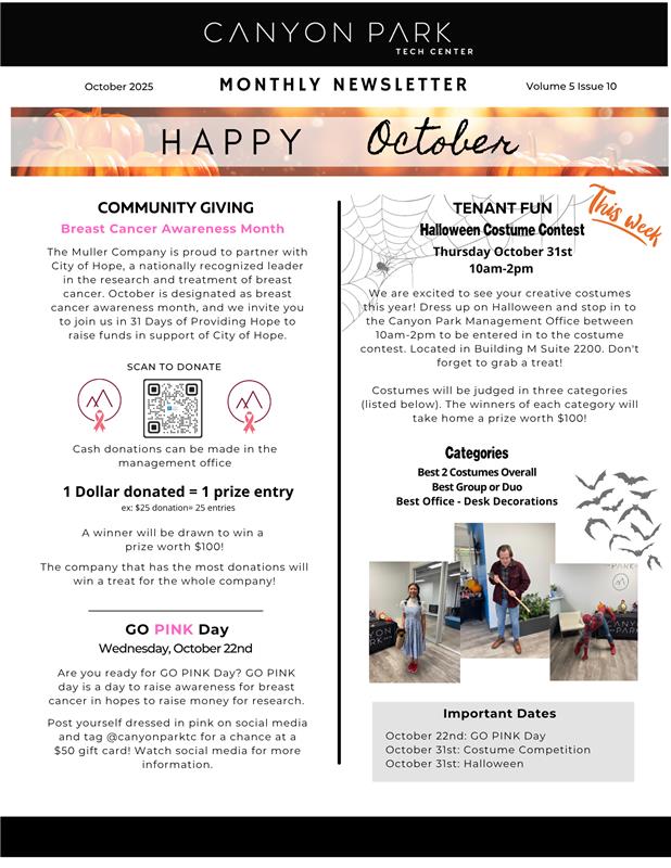 Find out the latest news about the Canyon Park Tech Center by reading one of our newsletters below
